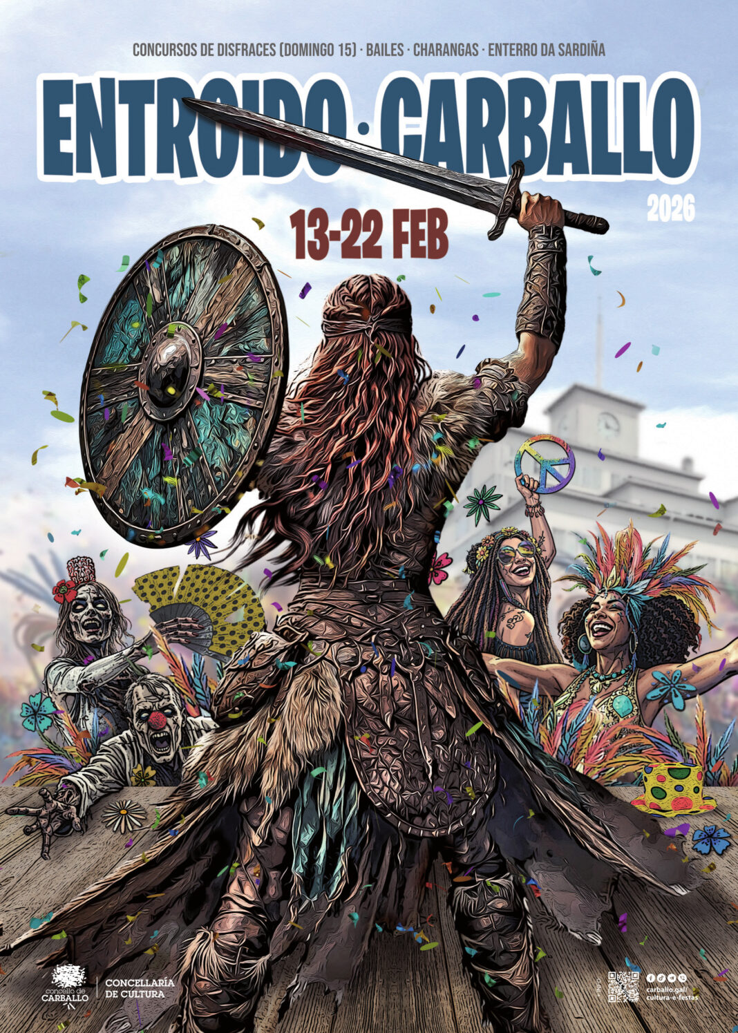Os disfraces invadirán Carballo un ano máis, encabezados polo viquingo que protagoniza este ano o cartel, entre o 7 de febreiro e o 7 de marzo: ruadas, música, pasarrúas, circo, bailes infantís, cocidos, festivais, charangas, festas… e tres citas que cada ano congregan a miles de persoas: o Concurso e Desfile de Disfraces, Comparsas e Carrozas, a Festa Infantil de Entroido e o Enterro da Sardiña.