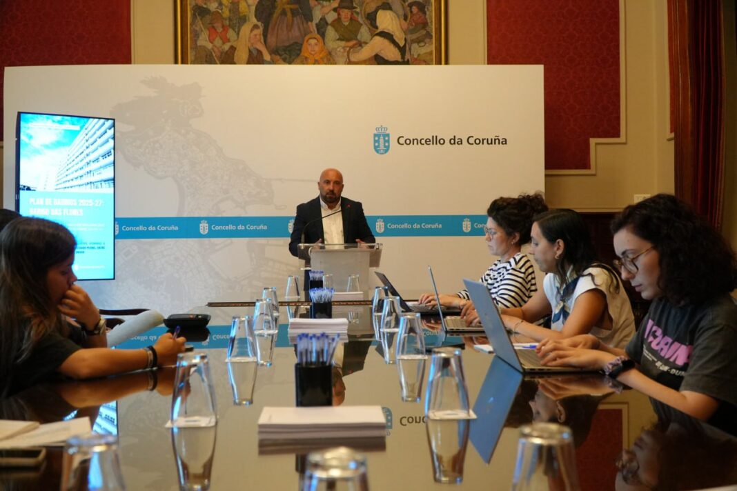 O concelleiro de Economía e Planificación Estratéxica, e voceiro do Goberno municipal, José Manuel Lage, informou esta mañá dos novos avances que está a experimentar o Plan de Barrios 2025-27, que suporá novas actuacións de mellora na Sagrada Familia, o Barrio das Flores e Labañou, intervencións que suporán un investimento de máis de tres millóns de euros.