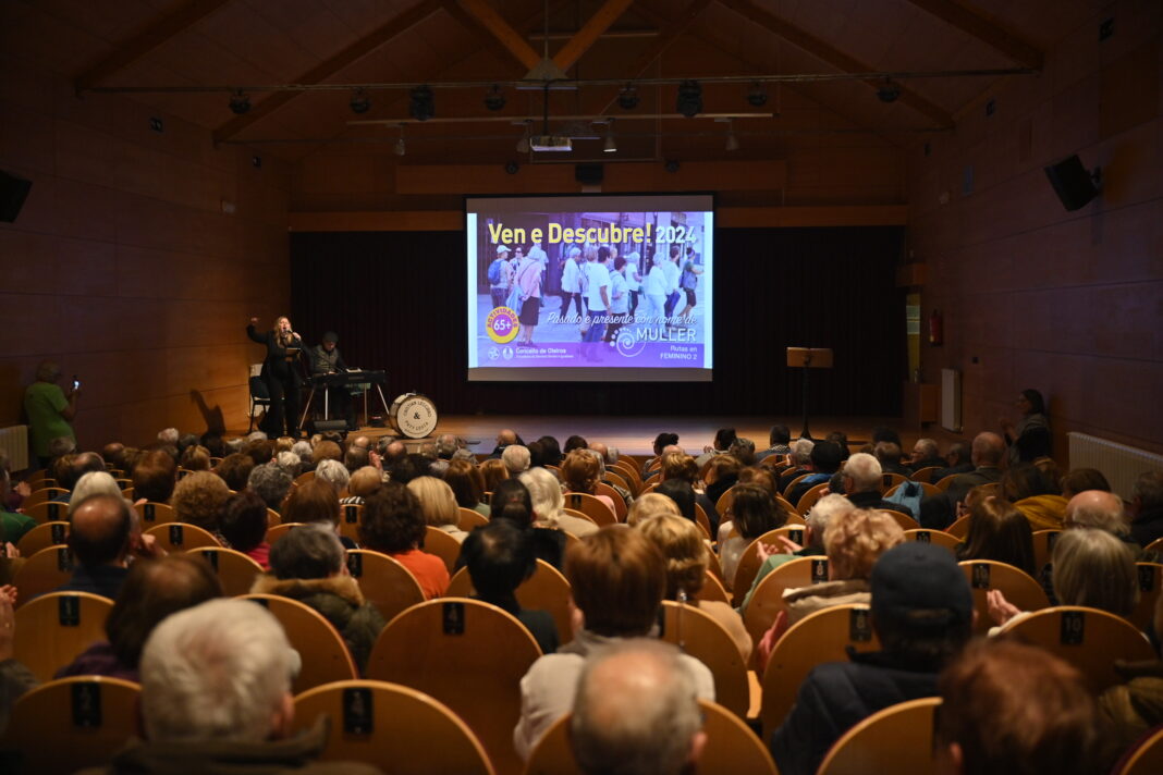Decenas de veciños e veciñas participaron esta tarde no acto de presentación do programa municipal Ven e Descubre, que ofrece para este ano 2024 un total de 1.350 prazas para excursións e rutas de sendeirismo para veciños e veciñas maiores de 65 anos. Haberá 19 saídas de excursionismo e 11 de sendeirismo.