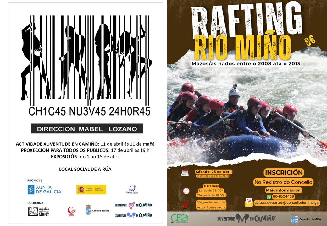 Pola outra banda, o próximo 25 de abril terá lugar unha saída de rafting no río Miño. Esta está dirixida a mozos nados entre os anos 2008 e 2013 e terá un custo de 8 euros.