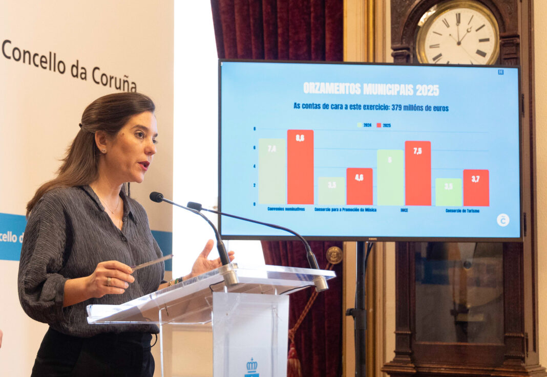 A alcaldesa tamén precisou o incremento nos Orzamentos Municipais permitirá reforzar o apoio do Concello ao tecido social, deportivo e cultural da cidade, a través dos convenios nominativos, que suben a 8,6 millóns —1,2 máis que o ano pasado—.