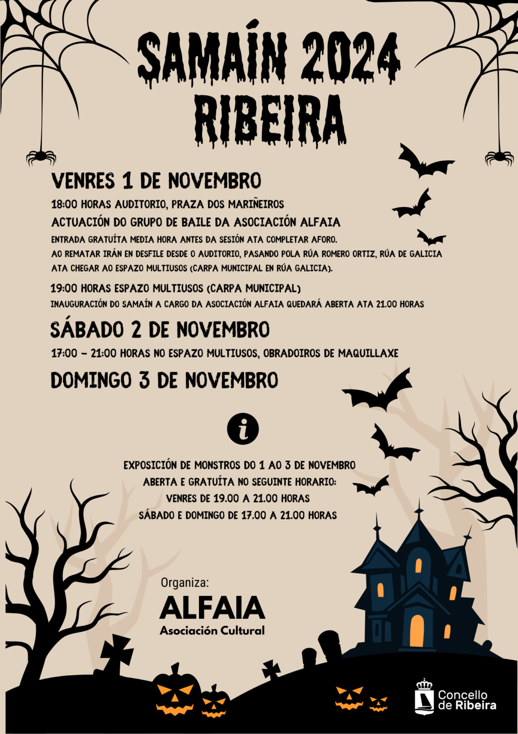 No día de hoxe presentouse a programación do Samaín do Concello de Ribeira da man da asociación cultural Alfaia. As actividades deste ano foron presentadas pola concelleira de Cultura, Antía Alberte e Mª José Carreira representante da asociación.