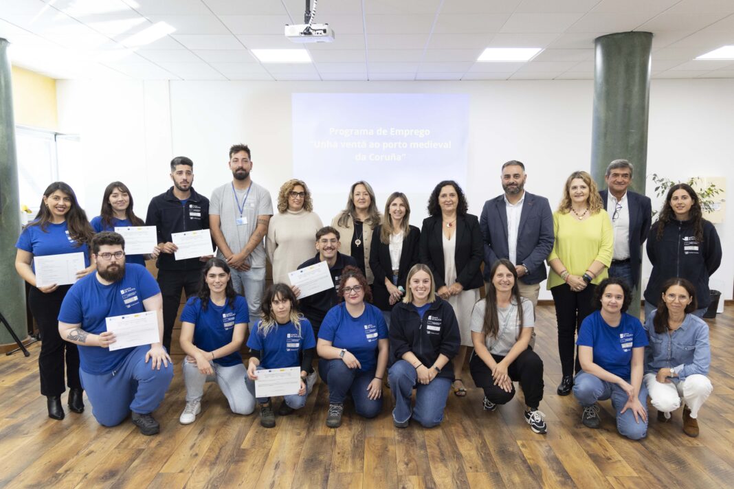 O obradoiro de emprego ‘Unha ventá ao porto medieval da Coruña’ rematou esta mañá co acto de entrega de diplomas aos mozos e mozas que obtiveron xa o seu certificado de profesionalidade. O alumnado-traballador estivo acompañado pola concelleira de Benestar Social, Igualdade, Participación, Nereida Canosa, quen destacou a importancia de impulsar iniciativas laborais para a mocidade: “Como Goberno somos conscientes da importancia que ten para a saúde e para o desenvolvemento persoal ter esta primeira oportunidade laboral polo que cada ano nos comprometemos para sacar adiante a convocatoria e ofertar un obradoiro para mozos e mozas”, sinalou.