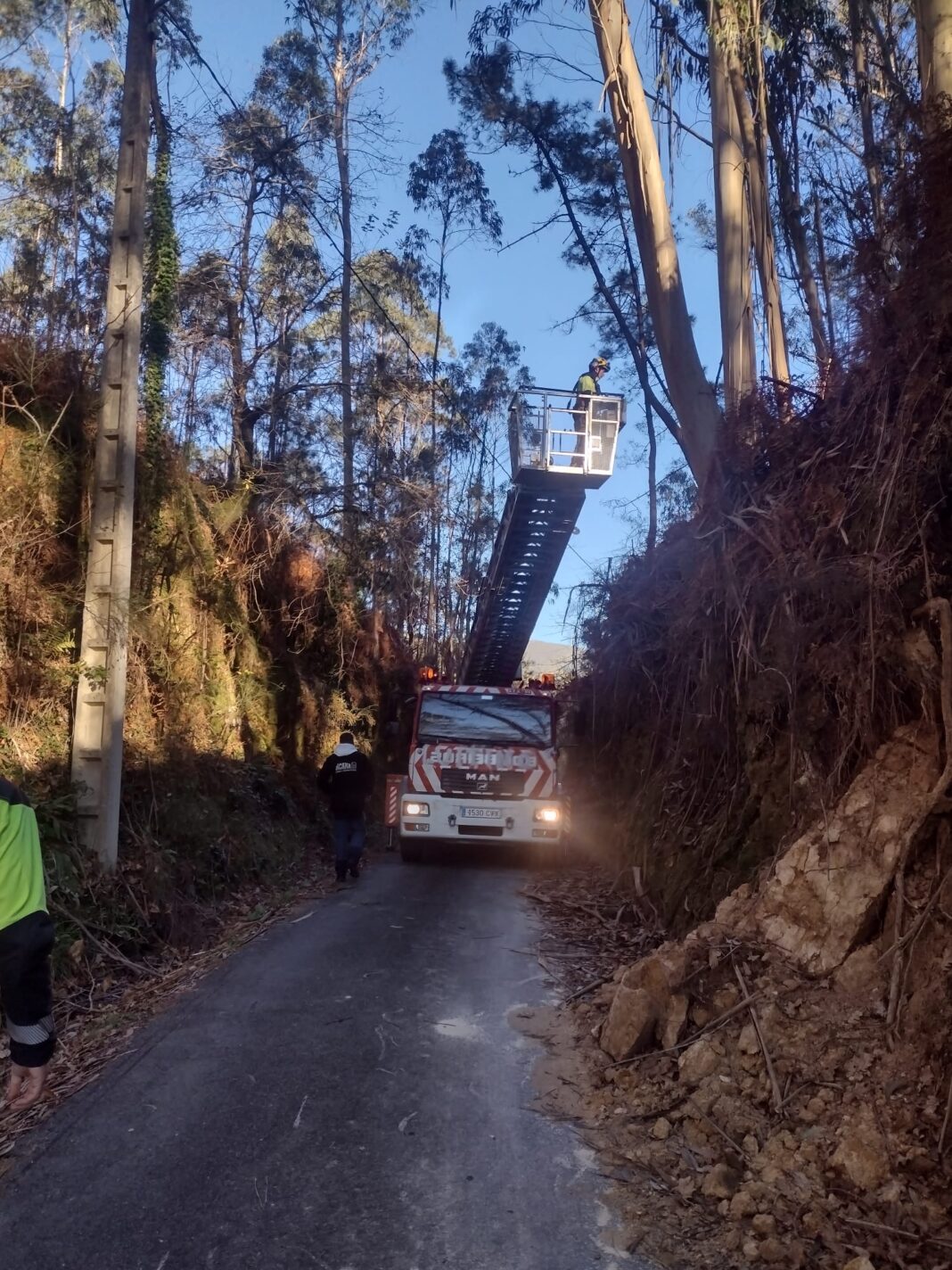 Os bombeiros do parque Provincial de Boiro atenderon sobre as 10:00 horas da mañá de hoxe unha chamada na que se informaba de dúas árbores con risco de caída no acceso a aldea de A Ferrería, no Concello de Rianxo.