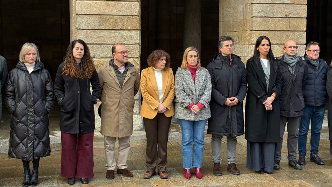 No minuto de silencio convocado polo Concello participaron os membros da Corporación Municipal, aos que se sumaron outros representantes institucionais, coma o reitor da Universidade de Santiago, Antonio López, e veciños.
