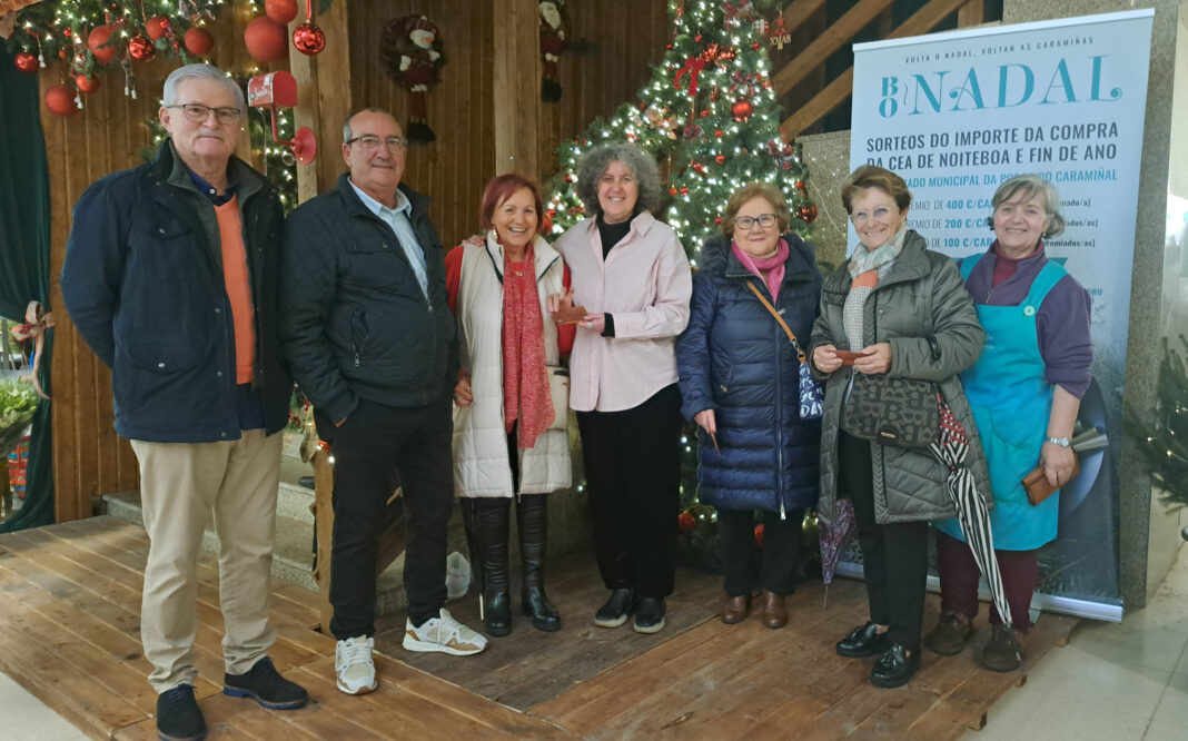 Milagros Vázquez Fernández (primeiro), Margarita Boo Hermo (segundo), Luis Moure Vázquez (segundo), Fernando Sánchez Louzao (terceiro), Mª José Rial Cadillo (terceiro), Mª Carmen Cerecedo Rego (terceiro) e Amalia López Vilasó (terceiro) recibiron os seus vales/caramiñas da man da concelleira da Promoción Económica, Amparo Cerecedo, para trocar por produtos nos postos do mercado municipal ata o día 24.