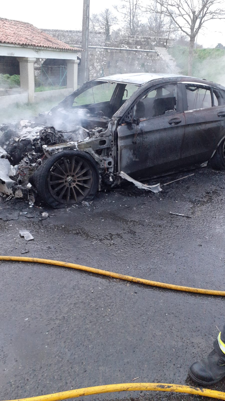Os bombeiros do parque Provincial de Cee foron alertados dun incendio dun vehículo no Km 62 da AC552, en Torelo, concello de Vimianzo.