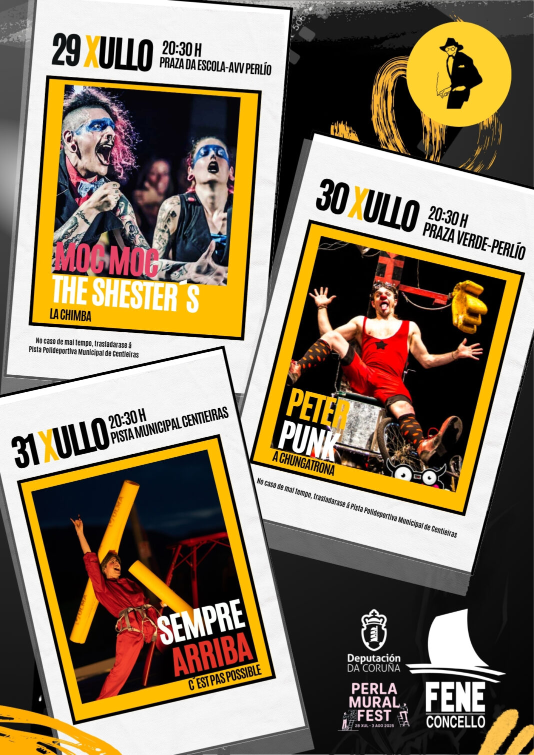 - Martes 29 de xullo, ás 20.30 horas, na Pista CCRD Perlío_Moc Moc The Shesters, “La Chimba” (espectáculo de circo, teatro e humor).