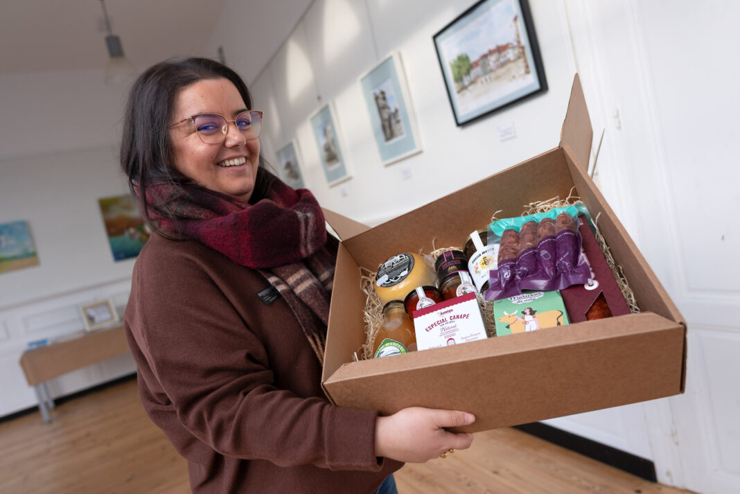 Dentro de cada lote inclúese un queixo madurado afumado Brigantia, unha caixiña das coñecidas Maruxas de Nata -feitas en Santa Mariña do Monte- e delicias de pemento e tomate de Ay!Carmen, así como unha botella de zume de mazá desta mesma marca, que elabora os seus produtos no centro de transformación agroalimentaria da Fusquenlla, situado en Moeche. Completa a parte doce un frasco de mel multifloral Abella Mestra, unha iniciativa de base local con colmeas en Lamas, Moeche e na zona de Muras.