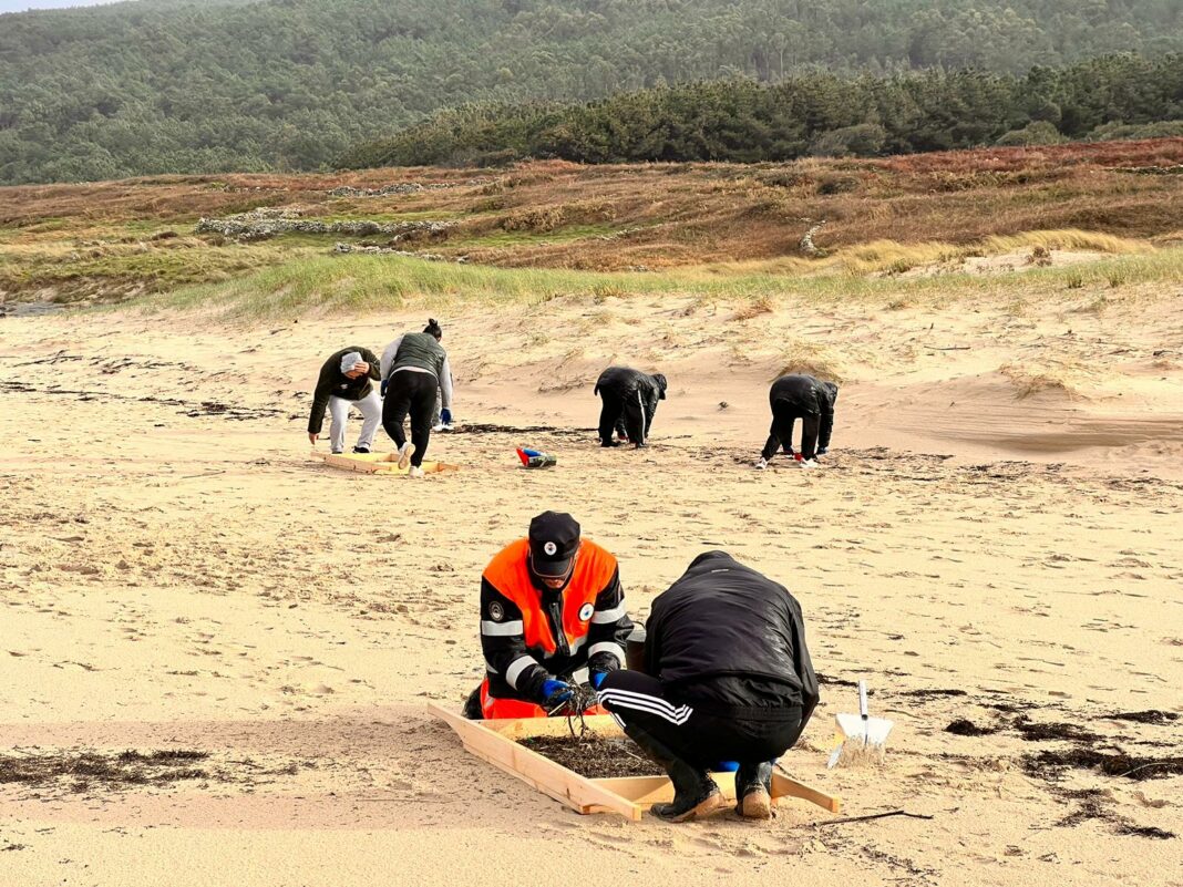 Equipados con luvas, cubos e coadores, estiveron traballando durante horas de maneira colaborativa e completamente coordinada para eliminar do areal estas pequenas bólas de plástico contaminantes. O seu pequeno tamaño e a gran extensión da praia, atopándose os gránulos moi dispersos, fan que sexa un labor difícil de afrontar.