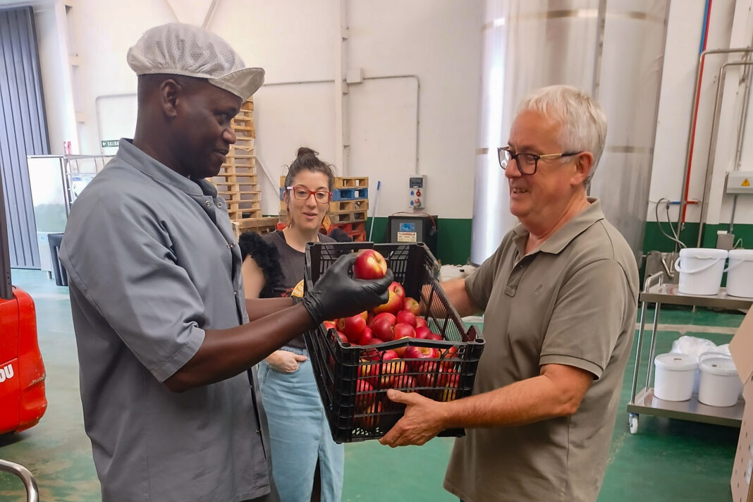 A marca de xeados da Cooperativa Agraria Provincial da Coruña leva varios meses traballando en colaboración coa área de Desenvolvemento local para poder ofrecer nesta edición da feira unha auténtica exquisitez elaborada con leite das vacas Jersey criadas na Esperanza (que dán a graxa e a proteína necesarias para obter un produto ben cremoso e saboroso), ademais de azucre, nata e un 40% de mazás da variedade Santiaguesa.