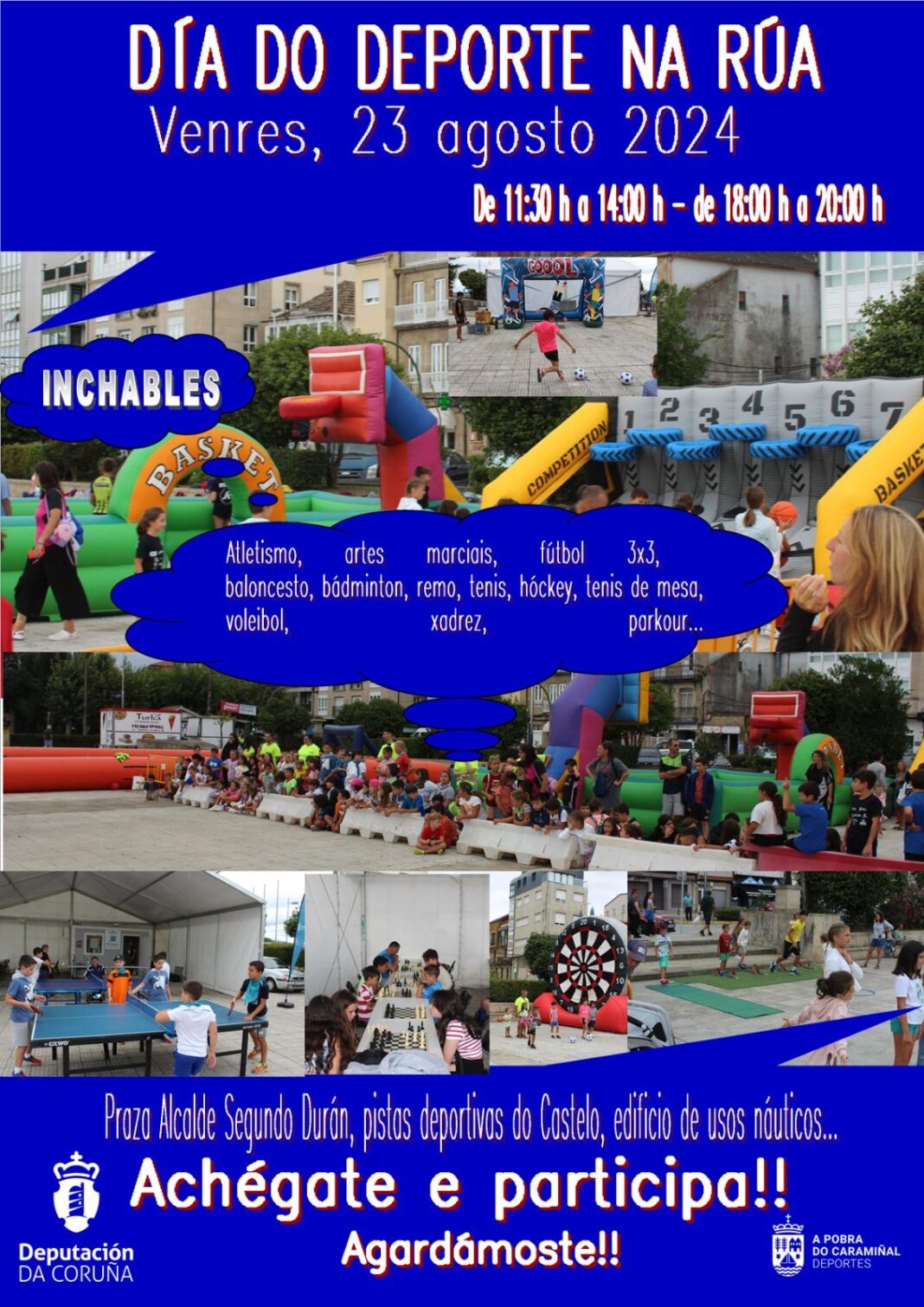 O deporte sairá ás rúas da Pobra do Caramiñal no 23 de agosto para promove-la práctica de diferentes disciplinas: atletismo, artes marciais, fútbol 3×3, baloncesto, bádminton, remo, tenis, hóckey, tenis de mesa, voleibol, xadrez, parkour… E, ademais, contarase con inchables.