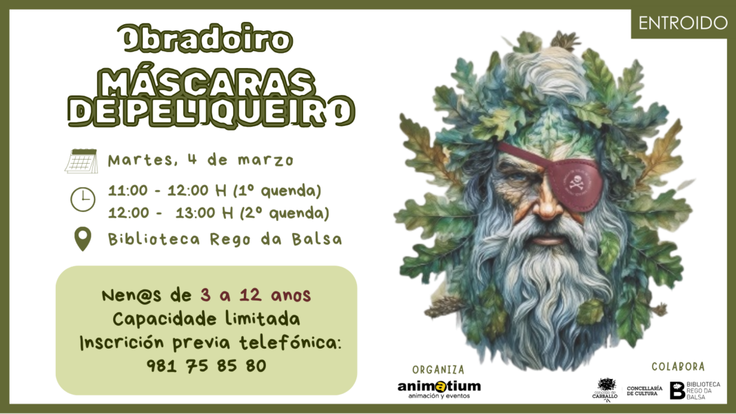 Respecto do programa completo de actividades máis aló do concurso, entre o venres 28 de febreiro e o 9 de marzo haberá espectáculos de rúa, festas, desfiles, bailes, pasarrúas… Hai que mencionar que haberá dous obradoiros para familias que requiren de inscrición previa na Biblioteca Rego da Balsa, lugar onde se desenvolverán a partir das 11.00 horas o luns 3 e o martes 4 de marzo. O luns terá lugar un Obradoiro de sombreiros tradicionais de Entroido organizado pola AC Escola do Alprende de Carballo, para o que xa están agotadas as prazas aínda que a inscrición continúa para a listaxe de agarda por se houbera algunha baixa; e o martes un Obradoiro de Máscaras de Peliqueiro, para o que todavía quedan prazas.