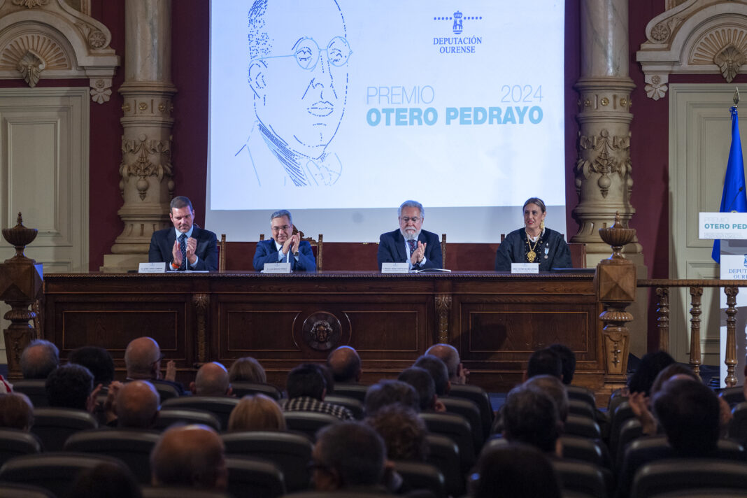 A Coral de Ruada recibiu esta mañá o Premio Otero Pedrayo 2024 nun acto celebrado no paraninfo do IES que leva o nome do insigne galeguista e no que participaron o presidente da Deputación de Ourense, Luis Menor, como institución organizadora este ano; o conselleiro de Cultura, José Campos, en nome da Xunta de Galicia como colaboradora; e o presidente do Parlamento galego, Miguel Santalices,