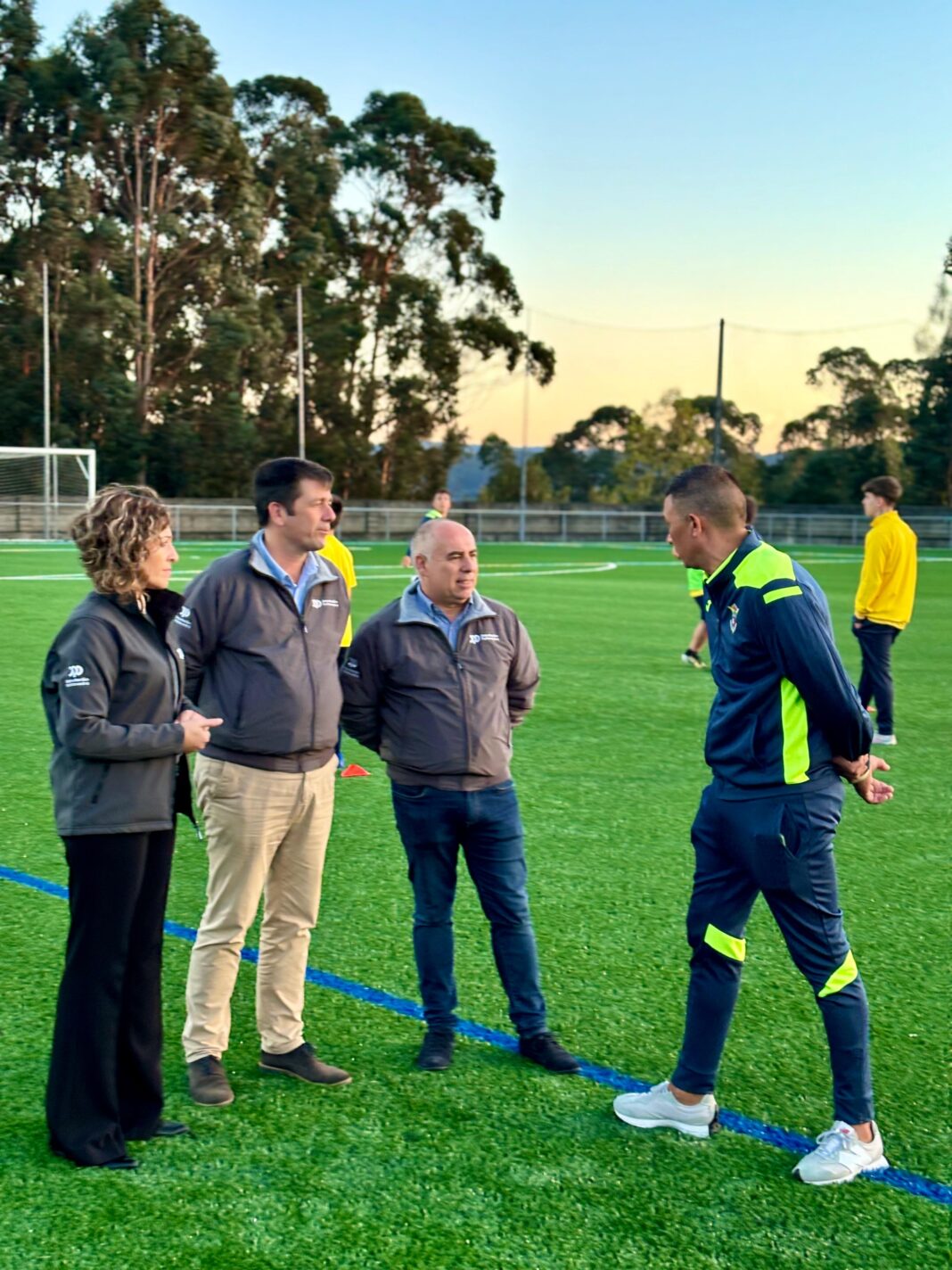 A Deputación de Pontevedra acaba de asistir aos primeiros adestramentos no campo de fútbol de Berdón, renovado con 180.000 euros de fondos provinciais. Os deputados Javier Tourís, Marcos Guisasola e Isabel Couselo asistiron á instalación deportiva que foi remodelada integramente con recursos do Plan Extraordinario de Infraestruturas Deportivas. “Vilagarcía -recordou Tourís- con 206.000 euros foi o concello máis beneficiado por este plan que no 2025 duplicará o seu orzamento, pasando dos 4 aos 8 millóns de euros”.