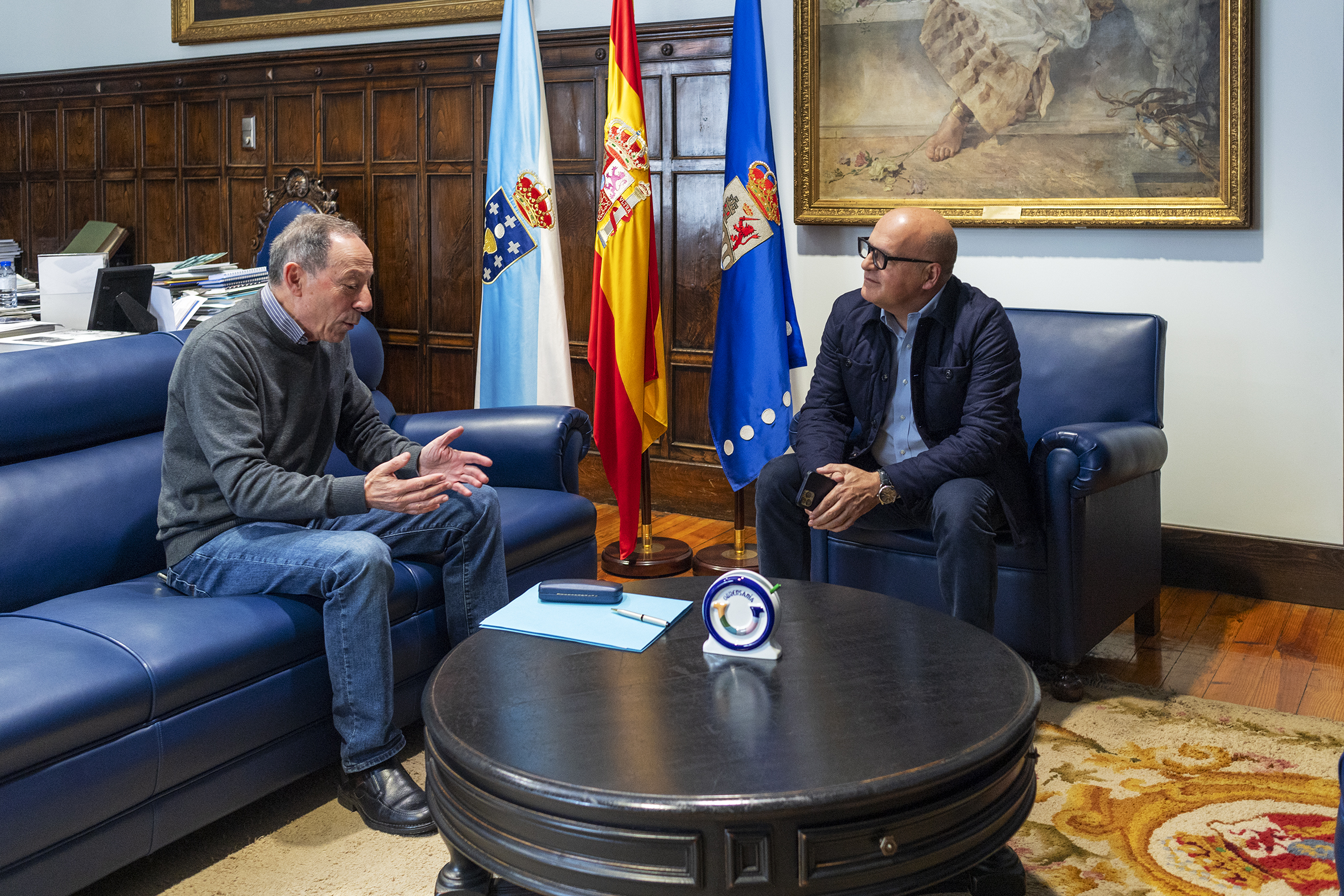 O presidente da Deputación, Manuel Baltar, mantivo un encontro de traballo no Pazo Provincial co alcalde de Beariz, Manuel Prado, para avaliar o estado das actuacións levadas a cabo pola Deputación na localidade e abordar novas liñas de colaboración entre as dúas administracións.