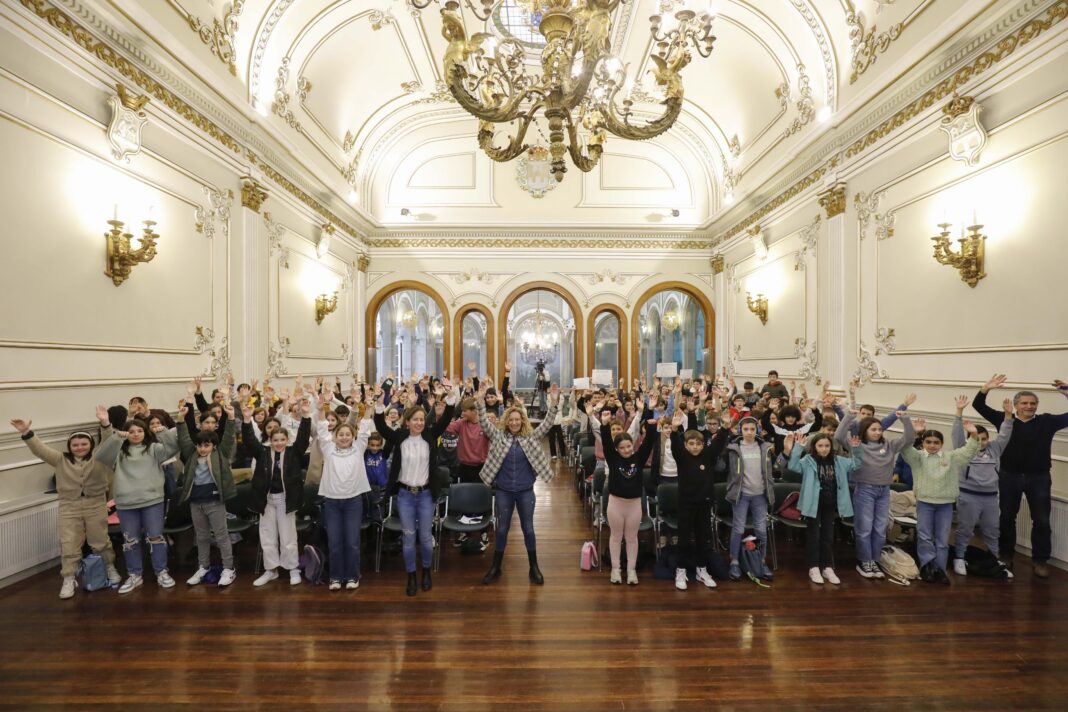300 nenos e nenas de dez centros educativos de Educación Primaria da provincia que participan no programa DepoEmprende na Escola presentaron no Pazo provincial as 12 cooperativas nas que traballarán ao longo deste curso para desenvolver os seus proxectos colaborativos e fomentar así o emprendemento. Tralo paso do alumnado de secundaria e de Centros de Educación Especial pola sede do organismo provincial, chegou a quenda dos rapaces de primaria que pertencen a dez centros educativos de nove concellos da provincia e que ademais de recoller os NIF para operar nas súas cooperativas tamén tiveron a oportunidade de facer unha visita ao Museo de Pontevedra.