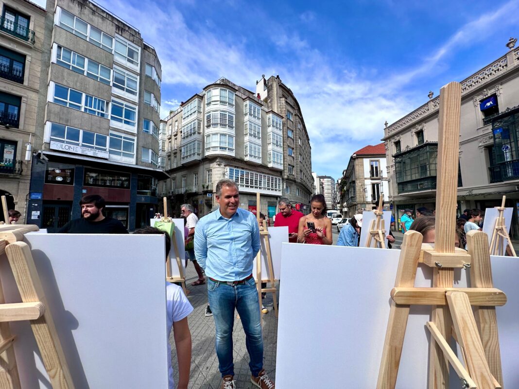 No marco da exposición, o Museo de Pontevedra levou esta mañá a fantasía da exposición ‘A era das fábulas’ á praza da Peregrina da capital provincial. O vicepresidente da Deputación, Rafa Domínguez, asistiu á actividade na que durante dúas horas persoas de todas as idades amosaron a súa creatividade pintando con óleo, pastel, rotuladores e outros materiais, as súas versións libres de Vasili Kandinky, Manuel Moldes e Inês Zenha, presentes na exposición do Museo. “Queriamos poñer en contacto a cidadanía coa arte e, para nós, é unha satisfacción ver como a xente enche esta praza da Peregrina de talento, como colle algunhas das obras emblemáticas de ‘A era das fábulas’ e desfruta da arte”, asegurou Domínguez.
