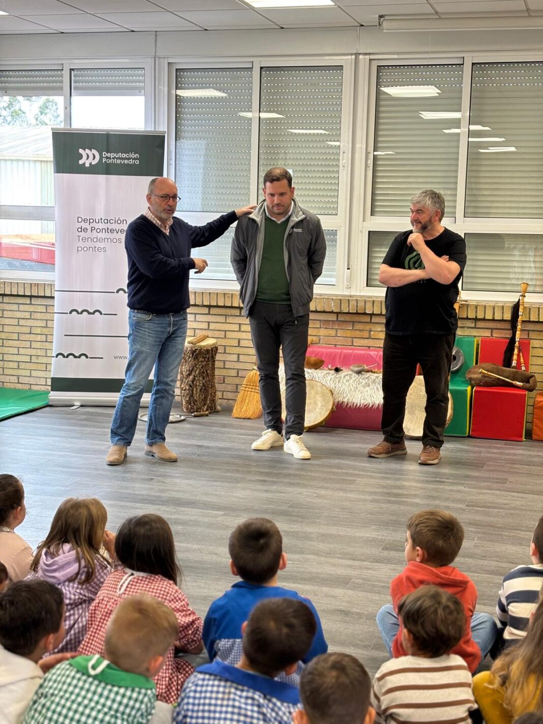 A Deputación de Pontevedra achegou esta mañá ás nenas e nenos de Campo Lameiro e Cerdedo-Cotobade a música de raíz, a creación musical autóctona e as tradicións a través de Instrumentos da Memoria. Obradoiros escolares sobre a música de raíz. O deputado de Cultura, Jorge Cubela, participou esta mañá nesta actividade que promove o organismo coa Fundación Legar co gallo do Día das Letras Galegas e que este mércores chega a Vilanova de Arousa e Portas “para espallar a música de raíz, a creación musical autóctona e as tradicións entre as nenas e nenos da provincia”.