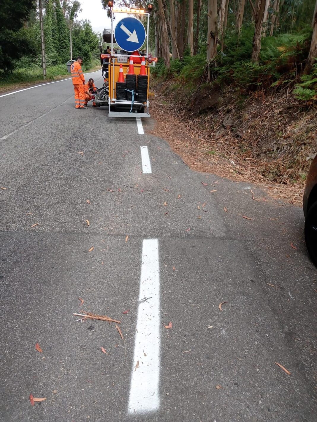 Están xa executados os traballos de desbroce, limpeza e repintado de liñas nas estradas provinciais EP-1006 O Hío-Donón e na EP-1007 acceso a praia de Nerga