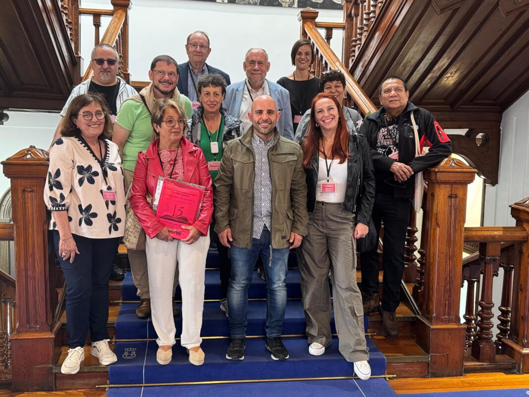 O director da Área de Cultura, Marcos Vázquez, recibiu á directiva desta entidade xunto aos participantes no XV Encontro Internacional de Poesía “Víctor Campio”