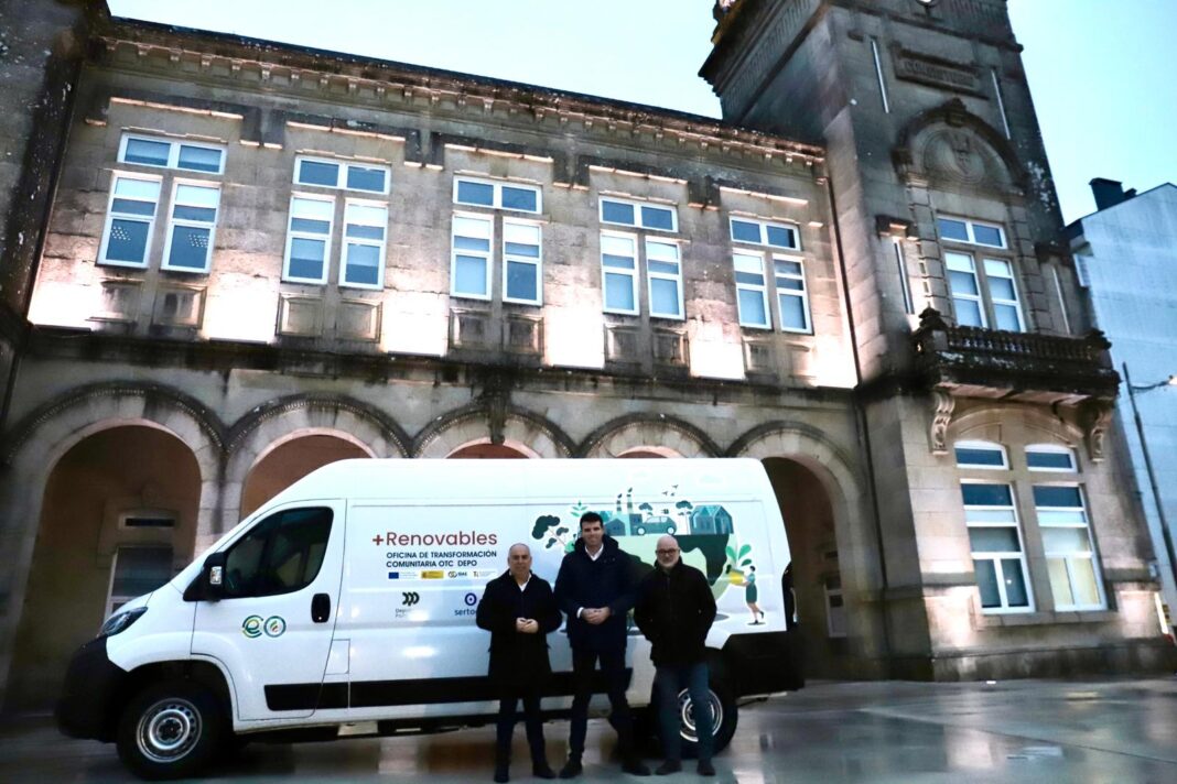 O deputado de Acción Comunitaria, Equipamentos Públicos e Finca Areeiro da Deputación de Pontevedra, Javier Tourís, visitou os concellos da Estrada e de Lalín coa oficina móbil do programa +Renovables, coa que a Deputación está a descentralizar os servizos que se prestan desde a Oficina de Transformación Comunitaria (emprazada no Viveiro de Empresas de Barro) para implicar os pequenos concellos nos retos da sostibilidade. O deputado provincial visitou a instalación móbil xunto co alcalde da Estrada, Gonzalo Louzao, e o de Lalín, José Crespo.