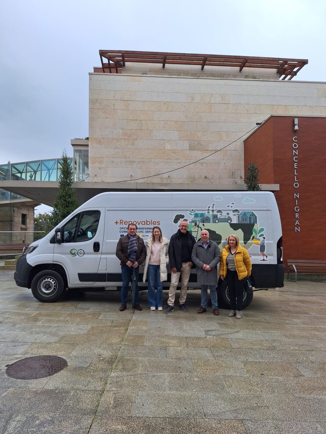 O deputado de Acción Comunitaria, Equipamentos Públicos e Finca Areeiro da Deputación de Pontevedra, Javier Tourís, visitou o Concello de Nigrán coa oficina móbil do programa +Renovables, coa que a Deputación está a descentralizar os servizos que se prestan desde a Oficina de Transformación Comunitaria (emprazada no Viveiro de Empresas de Barro) para implicar os concellos nos retos da sostibilidade. O deputado provincial reuniuse co alcalde da vila, Juan González, para divulgar esta oficina e as actuacións que +Renovables promove.