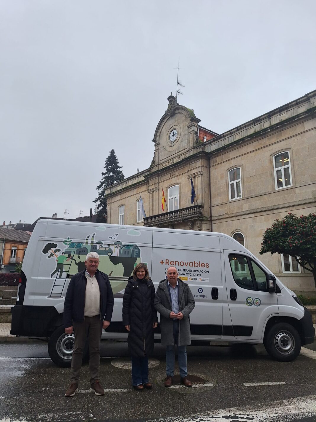 Javier Tourís recordou que a oficina móbil da Oficina de Transformación Comunitaria está a percorrer os concellos de menos de 50.000 habitantes da provincia “para informar, asesorar e acompañar proxectos relacionados coa eficiencia enerxética desde a súa creación ata a produción e o autoconsumo”. “Trátase –engadiu o deputado- dun vehículo 100% eléctrico desde onde estamos a informar in situ sobre cuestións de índole legal, como a redacción de estatutos e normas, a cesión de cubertas ou a revisión de contratos de execución de obras; técnica, como o deseño de proxectos de xeración térmica ou eléctrica; e tamén económica, achegando información sobre créditos bancarios e outras fórmulas de financiamento”. Neste eido, a alcaldesa de Ponteareas e tamén deputada provincial, Nava Castro, enxalzou a importancia de iniciativas como +Renovables, “que contribúen a asesorar aos concellos para a optimización dos recursos enerxéticos e o aproveitamento das enerxías limpas, fundamental para minimizar as facturas e fomentar o aforro e a eficiencia”.