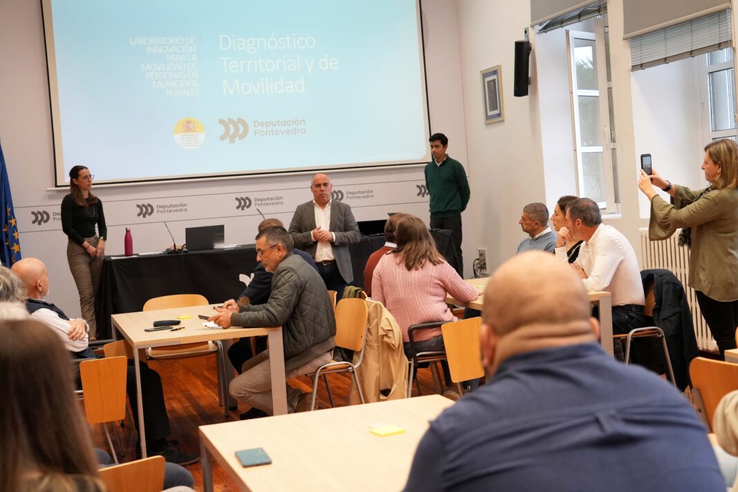 A Deputación de Pontevedra organizou este mércores no seu Edificio Administrativo, coa asistencia de máis dunha vintena de alcaldes e técnicos municipais dos concellos da provincia, un laboratorio de innovación enmarcado no programa Liña Conecta Rural para impulsar a mobilidade das persoas residentes en municipios de reto demográfico. Este proxecto, que conta cun orzamento de 550.000 euros dos que medio millón proceden do Ministerio para a Transición Ecolóxica e o Reto Demográfico, busca mellorar a mobilidade e a conectividade das zonas de reto demográfico mediante a provisión dun sistema de transporte público optimizado que contribúa a revitalizar o rural pontevedrés así como promover unha mobilidade máis inclusiva e sostible.