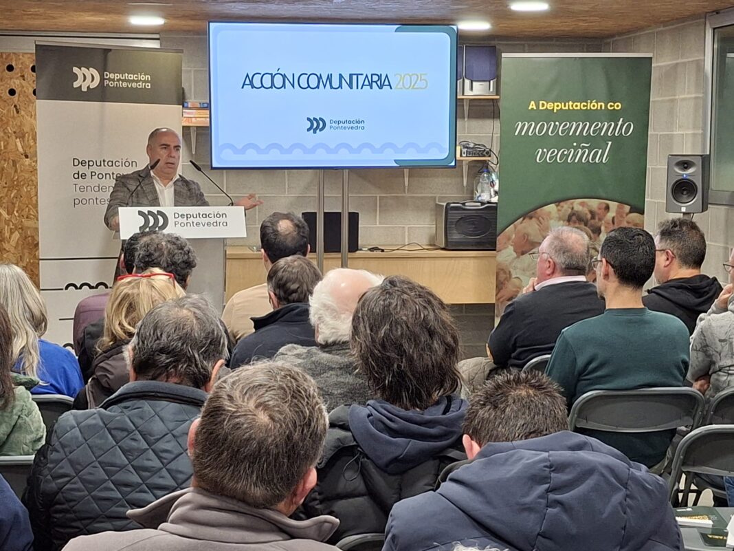 O deputado provincial de Acción Comunitaria, Javier Tourís, reuniuse co movemento asociativo e veciñal de Vilaboa para dar a coñecer as bases dos programas que impulsará esta área da Deputación de Pontevedra durante o ano 2025: Provincia Comunitaria e +Aqua, que repiten trala grande acollida das súas primeiras edicións, e o novo +Novaqua. En conxunto, recibirán un orzamento inicial de 2,4 millóns de euros, un 20% superior. O deputado provincial lembrou que “as bases xa están publicadas e os colectivos xa poden optar ás axudas, nun ano no que temos máis programas, máis recursos e máis potenciais beneficiarios”.