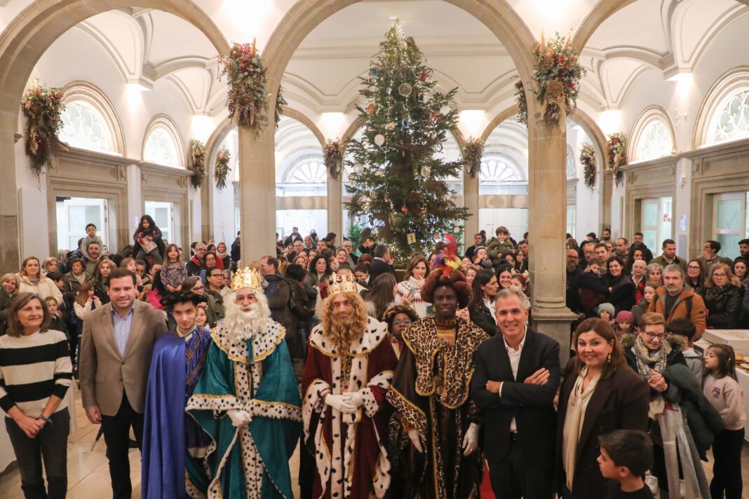 O Pazo provincial da Deputación de Pontevedra vestiuse de gala esta mañá para recibir ás súas maxestades os Reis Magos de Oriente. Fíxoo por primeira vez na súa historia, e nun Salón de plenos ateigado de nenos e nenas, que non se quixeron perder a oportunidade de poder velos en persoa e entregarlles as súas cartas. Alí foron recibidos, ademais, polo vicepresidente provincial, Rafa Domínguez, xunto cos deputados Jorge Cubela, Sandra Bastos e Belén Cachafeiro, despois de pasar polo Centro Príncipe Felipe, onde a deputada Sandra Bastos tamén se encargou de darlles a benvida.