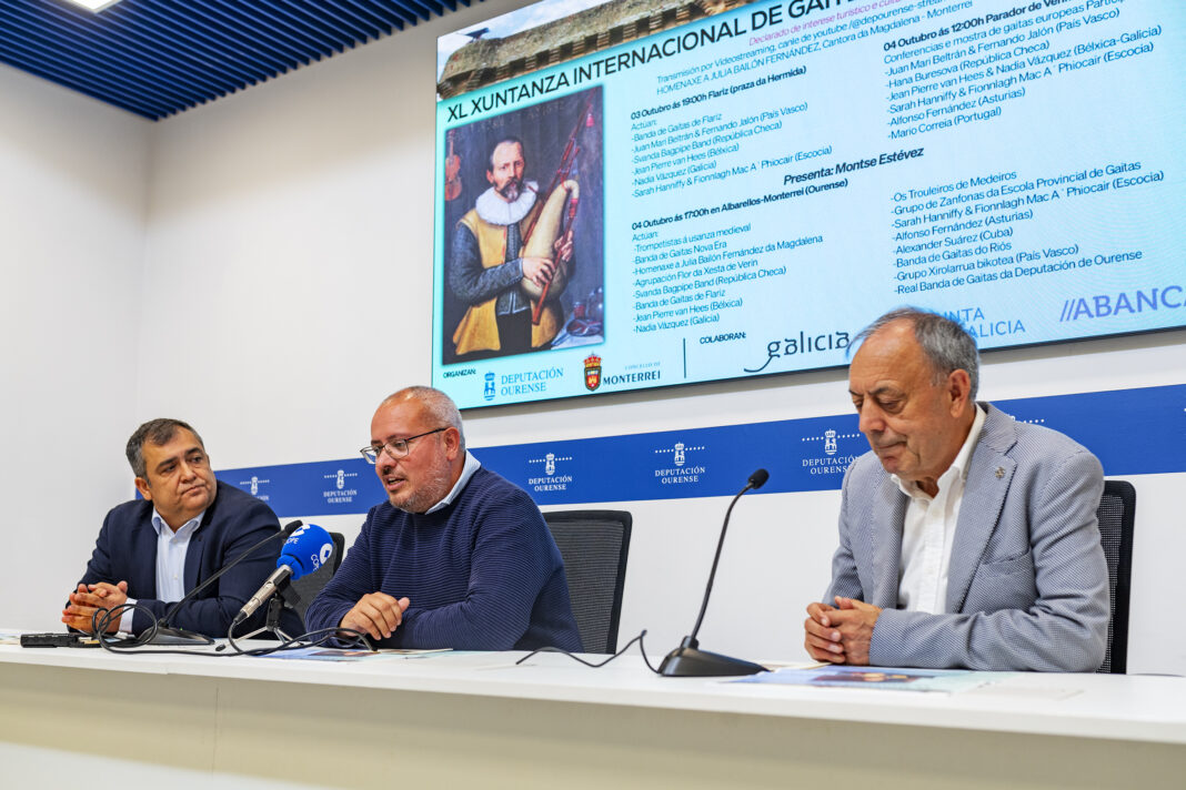 O vicepresidente segundo da Deputación e deputado de Cultura, César Fernández; o alcalde de Monterrei, José Luis Suárez; e o director da Escola de Gaitas da Deputación, Xosé Lois Foxo, presentaron hoxe os detalles do programa.