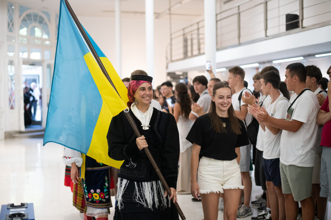O Centro Cultural Marcos Valcárcel acolleu a cerimonia inaugural co desfile das bandeiras das agrupacións procedentes de Arxentina, Xeorxia, Chile, Ucraína, Filipinas e Irlanda do Norte