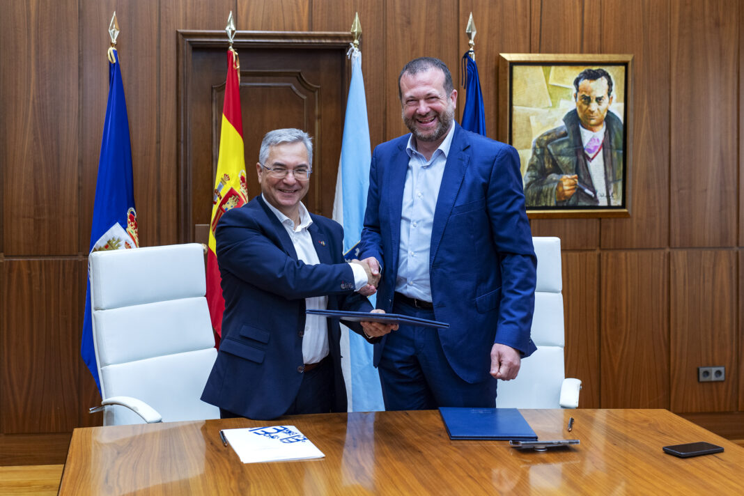 O presidente da Deputación de Ourense, Luis Menor, e o presidente de Sogarpo (Sociedade de Garantía Recíproca das provincias de Pontevedra e Ourense), Artur Yuste, renovaron esta mañá no Pazo Provincial o convenio de colaboración que manteñen aberto desde 2023 para impulsar a actividade económica na provincia de Ourense, mediante a concesión de préstamos e avais a empresas e emprendedores, a custo cero, bonificados pola Deputación. A achega da institución provincial para 2025 será de 250.000 euros.