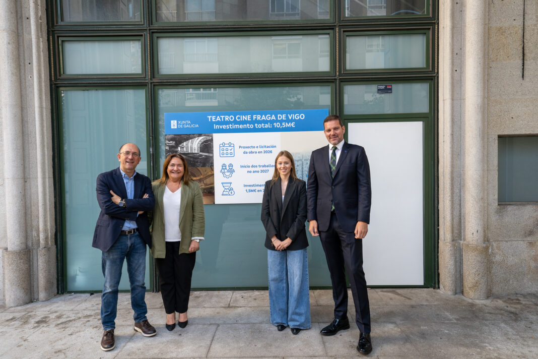A Xunta de Galicia destinará 10,5M€ para completar as obras do Teatro Cine Fraga. Así o anunciou hoxe o conselleiro de Cultura, Lingua e Xuventude, José López Campos, nunha visita a este espazo na que, acompañado pola delegada territorial da Xunta en Vigo, Ana Ortiz, e o director xeral de Cultura, Anxo M. Lorenzo, precisou que se trata dunha senda orzamentaria posta en marcha coa adquisición do inmoble e que se alongará ata o vindeiro ano 2028.