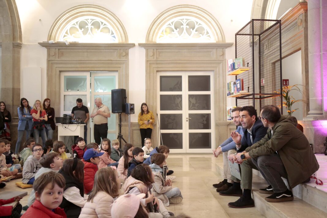 O presidente da Deputación de Pontevedra, Luis López, animou aos escolares do colexio Froébel de Pontevedra a descubrir “os segredos que agochan os contos” nunha actividade de contacontos organizado no Pazo provincial para celebrar, este 23 de abril, o Día do Libro. O mandatario provincial e o deputado de Cultura, Jorge Cubela, presentaron aos preto de vinte alumnos a alumnas de primeiro ciclo de Primaria deste centro pontevedrés dous dos seus contos favoritos antes de dar paso ao espectáculo do contacontos Caxoto e o ilustrador Marc Taeger. “Cando sexades maiores ídesvos lembrar sempre do primeiro libro que lestes, así que anímovos a que leades moito”, díxolles Luis López aos escolares.