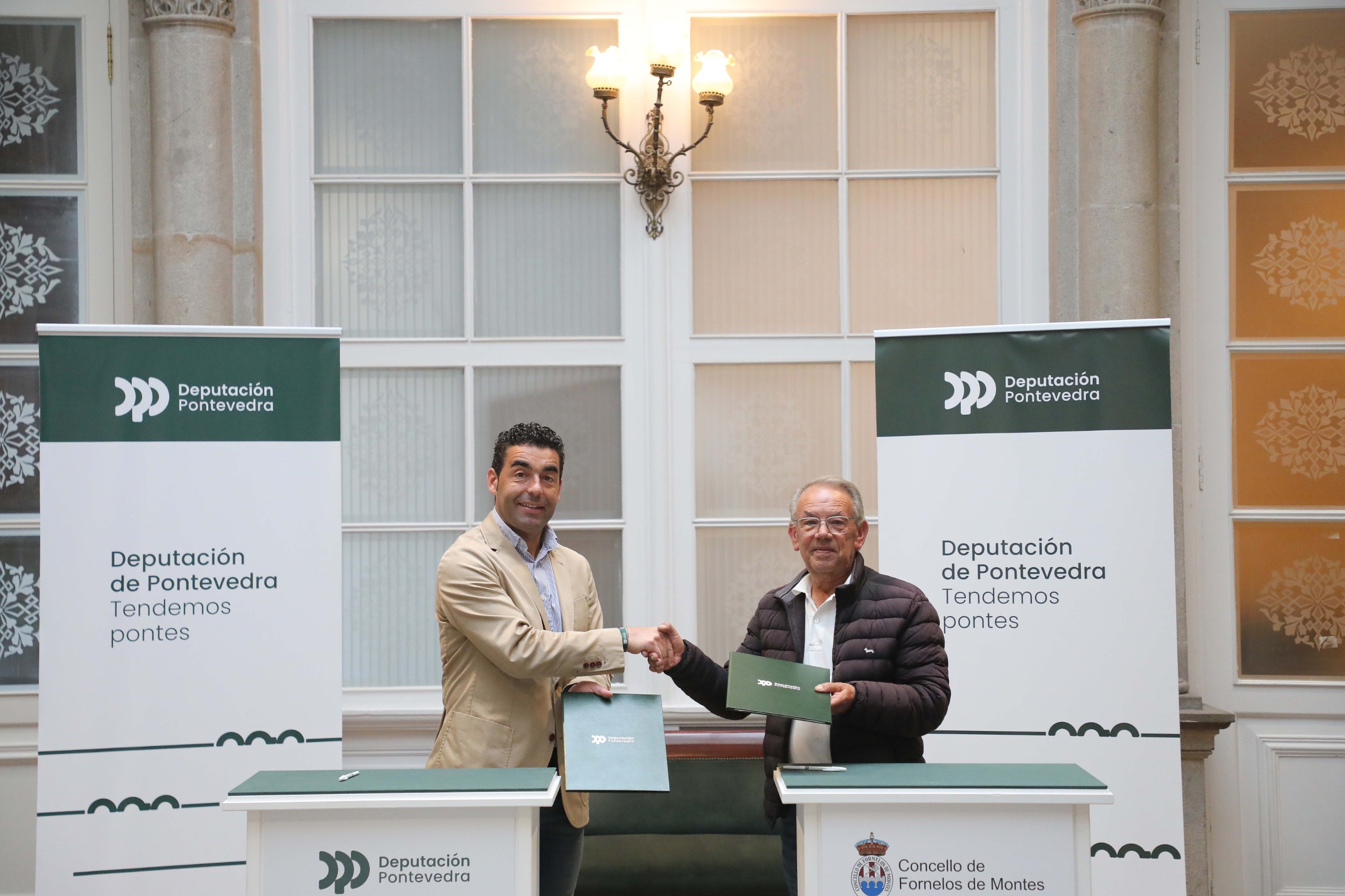 O presidente da Deputación de Pontevedra, Luis López, vén de asinar o convenio de colaboración co alcalde de Fornelos de Montes, Emiliano Lage, para a urbanización da praza pública do núcleo urbano deste concello. Un acordo asinado no marco do Plan Extra, o novidoso plan de investimentos do goberno provincial que mobiliza ata 38 millóns de euros entre os concellos de menos de 50.000 habitantes da provincia para executar proxectos estratéxicos. No Pazo provincial, López e Lage selaron un acordo a través do cal o organismo provincial achega máis de 280.000€ a un proxecto valorado en 331.500€. Unha nova mostra do compromiso do goberno provincial para cooperar cos concellos na execución de proxectos que transforman e modernizan o espazo público.