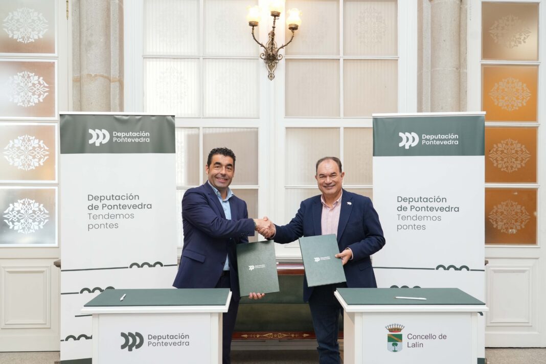 O presidente da Deputación de Pontevedra, Luis López, vén de asinar o convenio de colaboración co alcalde de Lalín, José Crespo, para a ampliación do auditorio da parroquia de Vilatuxe e a urbanización da súa contorna. Un acordo asinado no marco do Plan Extra, o novidoso plan de investimentos do goberno provincial que mobiliza ata 38 millóns de euros entre os concellos de menos de 50.000 habitantes da provincia para executar proxectos estratéxicos. No Pazo provincial, López e Crespo selaron un acordo a través do cal o organismo provincial achega 1,1 millóns de euros para financiar unha obra valorada en preto de 1,8 millóns de euros. “É unha aposta por levar servizos ás parroquias, algo que coincide co labor descentralización da Deputación, para que os veciños poidan contar con infraestruturas de calidade vivan onde vivan”, destacou o dirixente provincial.