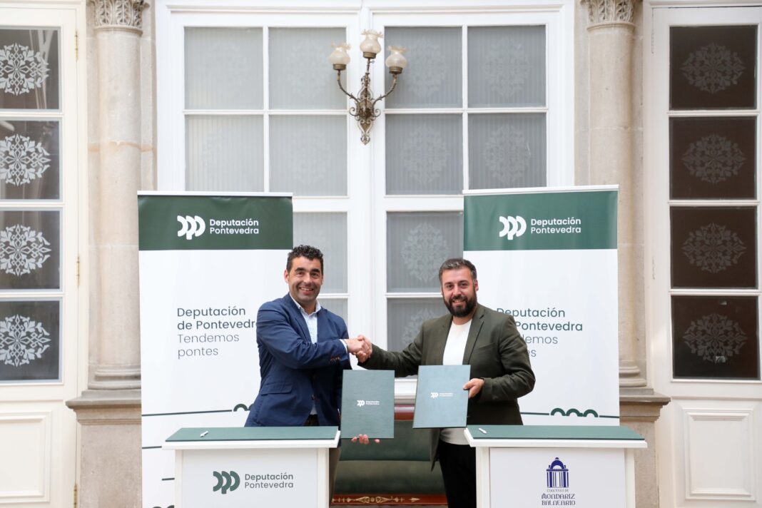 O presidente da Deputación de Pontevedra, Luis López, acaba de asinar o convenio de colaboración co alcalde de Mondariz-Balneario, César Gil, para o financiamento do proxecto de humanización da contorna da Praza de Abastos. Un acordo asinado no marco do Plan Extra, o plan de investimentos do goberno provincial que mobiliza ata 38 millóns de euros entre os concellos de menos de 50.000 habitantes da provincia para executar proxectos estratéxicos. No Pazo provincial, López e Gil selaron un acordo para impulsar a actuación, que ascende a 575.000 euros e que serán financiados pola Deputación de Pontevedra cunha achega de 489.000 euros ao abeiro deste plan.