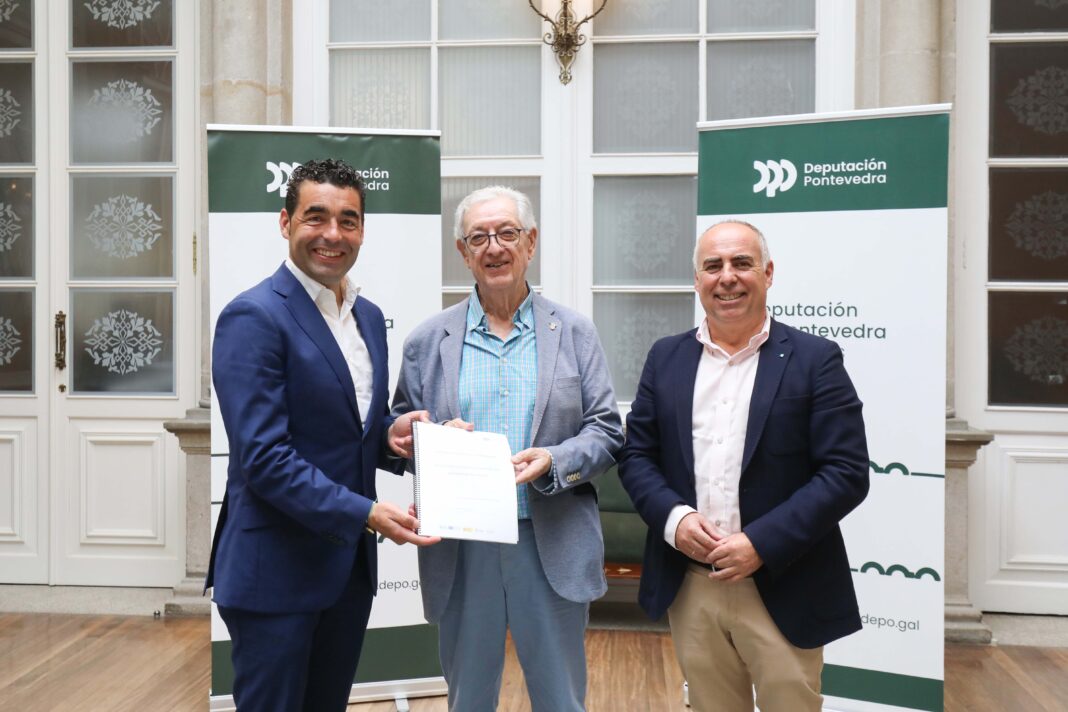 O presidente da Deputación de Pontevedra, Luis López, xunto co deputado de Fondos Europeos, Javier Tourís, acaba de entregar ao alcalde de Valga, José María Bello, o estudo de potencial enerxético do municipio desenvolvido polo organismo provincial a través da Oficina de Transformación Comunitaria +Renovables. López remarcou que, segundo o informe elaborado pola Deputación, “Valga presenta un potencial de xeración de enerxía renovable alto” e conta con condicións favorables para o desenvolvemento dunha comunidade enerxética local.