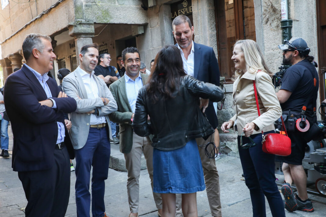 O presidente da Deputación de Pontevedra, Luis López, acompañado polo vicepresidente Rafa Domínguez, o deputado de Cultura, Jorge Cubela; e o conselleiro de Cultura da Xunta, José López; visitou a rodaxe da película “Antes de Nós” —centrada na vida de Castelao, protagonizada por Xoán Fórneas e dirixida por Ángeles Huertas— que se filma estes días na zona vella de Pontevedra. O dirixente asistiu á filmación dunha das escenas na rúa Figueroa e tivo a oportunidade de coñecer e conversar co equipo da película.