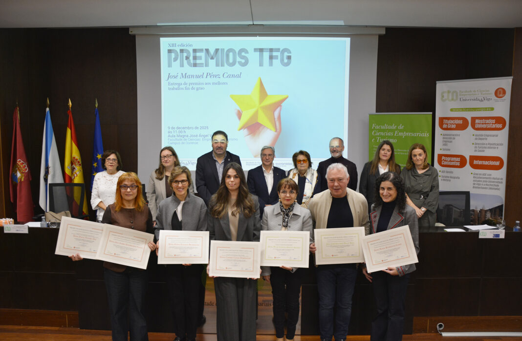 A Deputación de Ourense participou hoxe no acto de entrega dos Premios aos Traballos de Fin de Grao José Manuel Pérez Canal, un certame que recoñece a excelencia académica do alumnado da Facultade de Ciencias Empresariais e Turismo do Campus de Ourense.