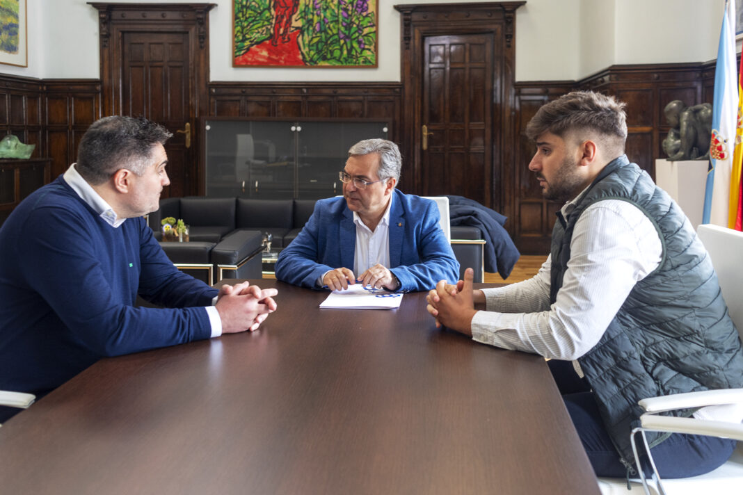 O presidente da Deputación, Luis Menor, recibiu no Pazo Provincial ao presidente do Ourense CF, Camilo Díaz, e o director xeral, Javier Quiroga, aos que expresou persoalmente os seus parabéns polo recente ascenso á ascenso á 1º RFEF.