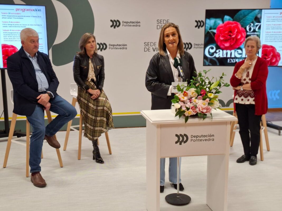 A vicepresidenta da Deputación de Pontevedra, Luisa Sánchez, convidou a toda a cidade de Vigo a “deixarse sorprender” polas actividades organizadas nas vindeiras semanas polo Concello de Ponteareas en torno á camelia. A representante provincial recibiu este luns á alcaldesa da vila do Tea, Nava Castro, na sede olívica da Deputación para presentar a exposición ‘A camelia, flor de galegas e galegos’, que se inaugurará o 28 de novembro na Praza da Música. Ademais, animou a mergullarse na programación deseñada para os días 5, 6 e 7 de decembro, na que se inclúen os premios do Concurso de Relatos Ilustrados da Camelia, charlas sobre o té de camelia, obradoiros en torno a esta flor e varias actuacións de música tradicional galega.