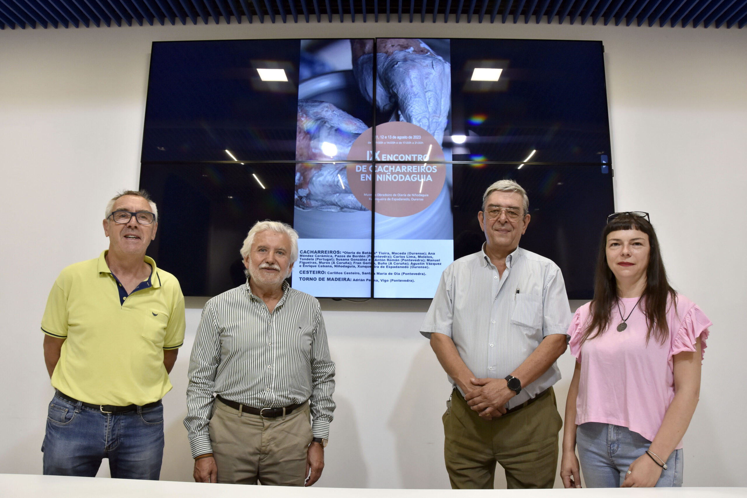 O deputado provincial de Turismo, Rosendo Fernández; así como Carlos Gómez (alcalde de Xunqueira de Espadanedo), Agustín Vázquez (presidente da Asociación Cultural Amigos do Barro de Niñodaguia) e Mónica Blanco, (responsable do Museo de Olería de Niñodaguia), presentaron esta mañá na Deputación de Ourense o programa do IX Encontro de Cacharreiros de Niñodaguia.
