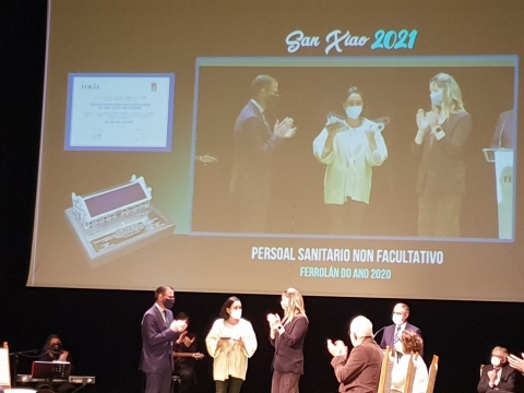 A alcaldesa de Lugo, Lara Méndez, acompañou esta mañá ao seu homólogo do Concello de Ferrol, Angel Mato, ao conselleiro de Sanidade, Xulio García Comesaña, e a unha representación das dúas corporacións municipais na entrega da distinción de Ferroláns do Ano, que se celebra con motivo do San Xiao, e que nesta ocasión recaíu ao persoal da área Sanitaria de Ferrol, que traballou en primeira liña contra a COVID-19.