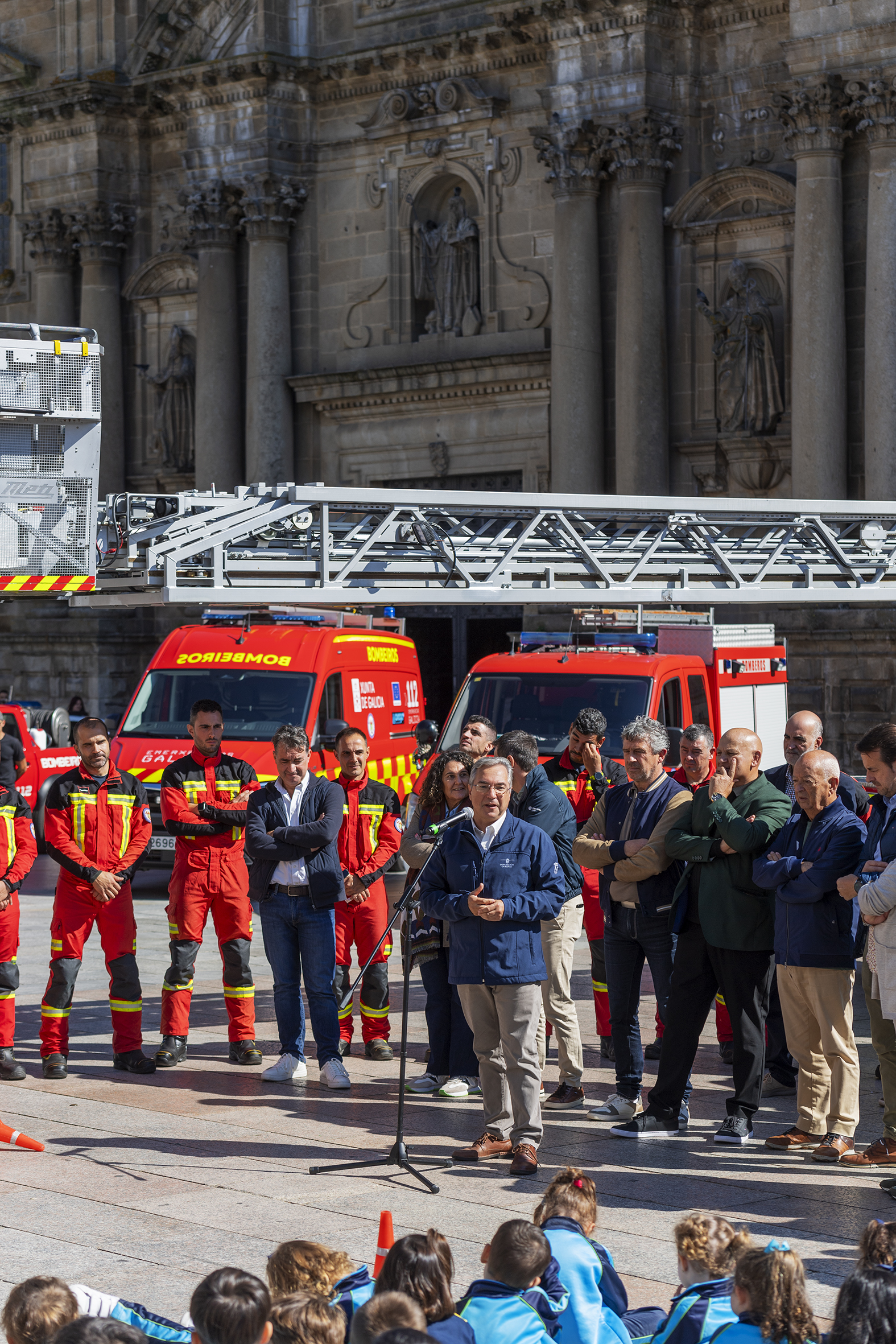 Nunha exhibición con máis de seis vehículos do parque, Luis Menor agradeceu ao alumnado de infantil do Colexio Sagrado Corazón que acompañados polos seus mestres, asistiran a esta demostración porque “a seguridade e as emerxencias, como todas as cousas importantes, apréndense na escola”.