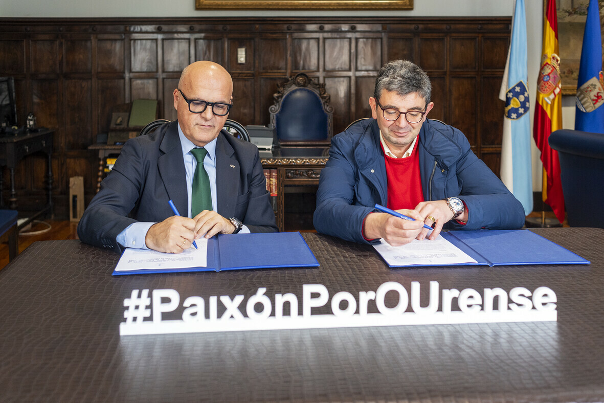 O presidente da Deputación de Ourense, Manuel Baltar, e o alcalde de Taboadela, Álvaro Vila, asinaron un convenio de colaboración para a transformación da antiga reitoral na futura Casa da Cultura municipal.