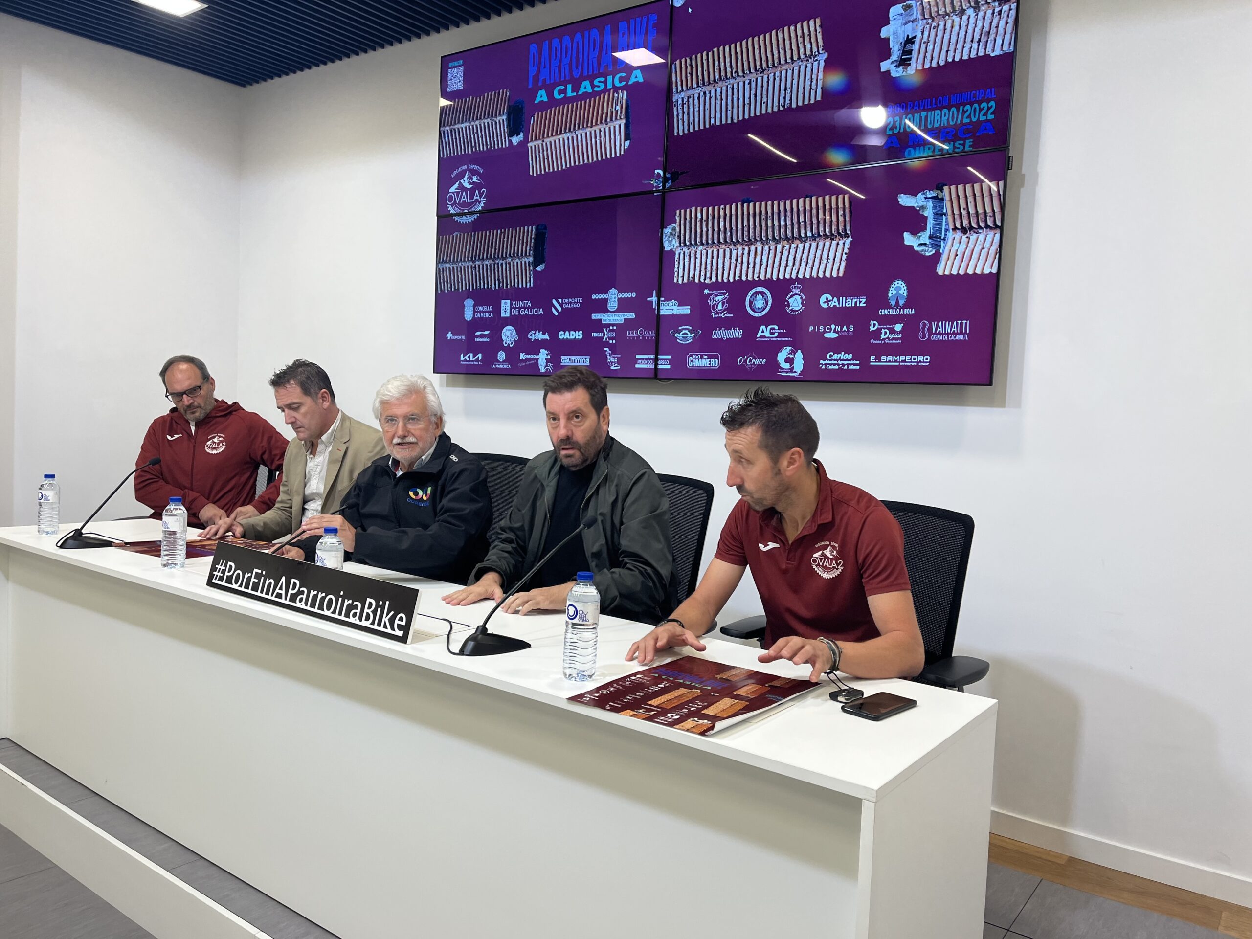 O Pazo Provincial acolleu esta mañá a presentación da Parroira Bike coa presencia do vicepresidente primeiro da Deputación de Ourense, Rosendo Fernández; o xefe do servizo de Deportes da Xunta en Ourense, Manuel Pérez; o concelleiro de Deportes de A Merca, José Manuel Taín; e o secretario e o vogal da Asociación Deportiva Ovala2, José Ribo e Alberto Taín.