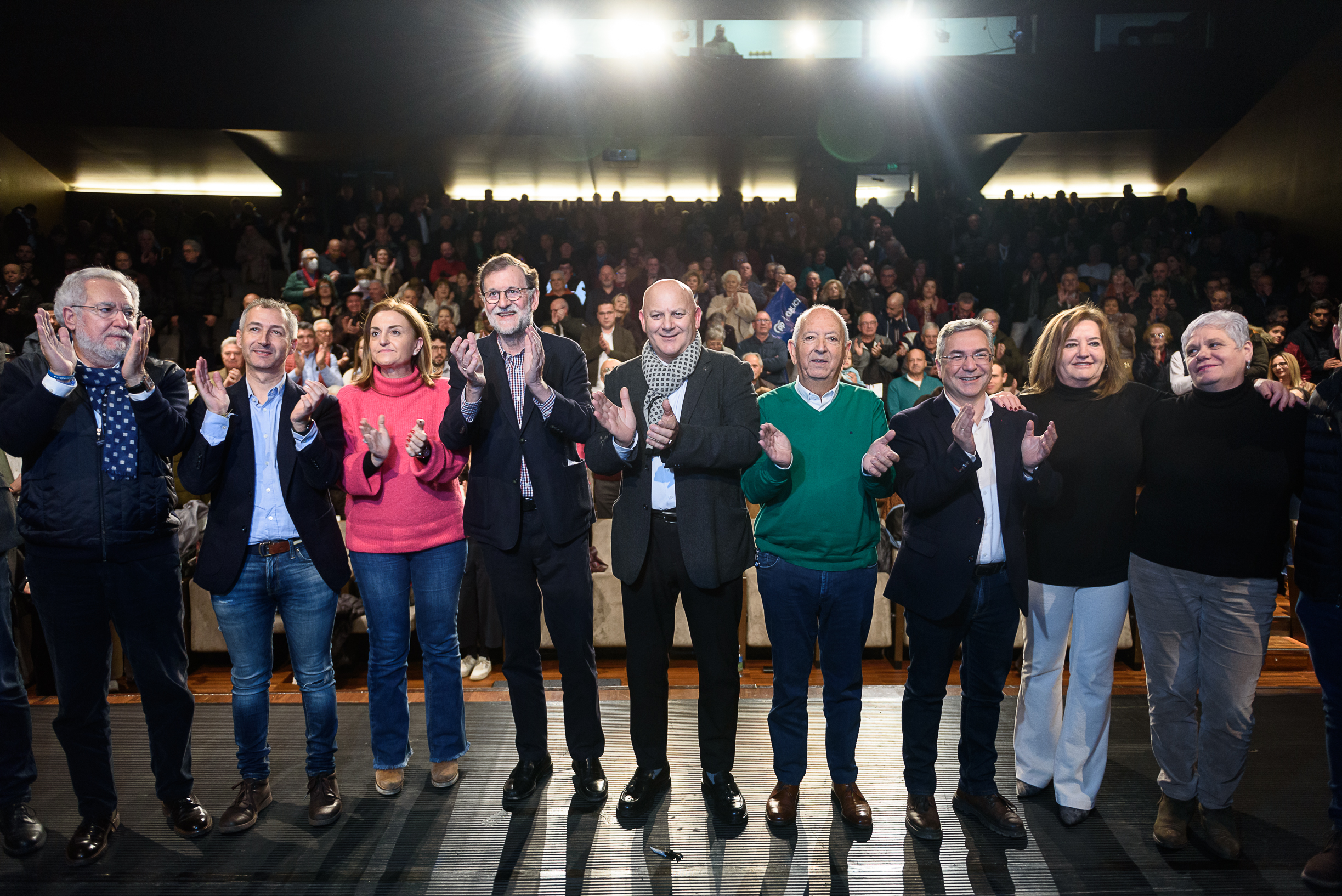 Un ateigado auditorio Ilduara, en Celanova, con máis de 400 persoas, acolleu o mitin dos populares no que participaron o presidente de honra do Partido Popular, Mariano Rajoy; o líder dos populares na provincial, Luis Menor; os candidatos Elena Rivo e José Luis Ferro; e o presidente local do PP, Pablo Pérez.